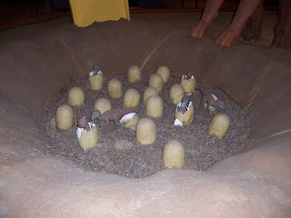 Abel with one of his eggs....he had to look inside each one before putting it in his bag...
